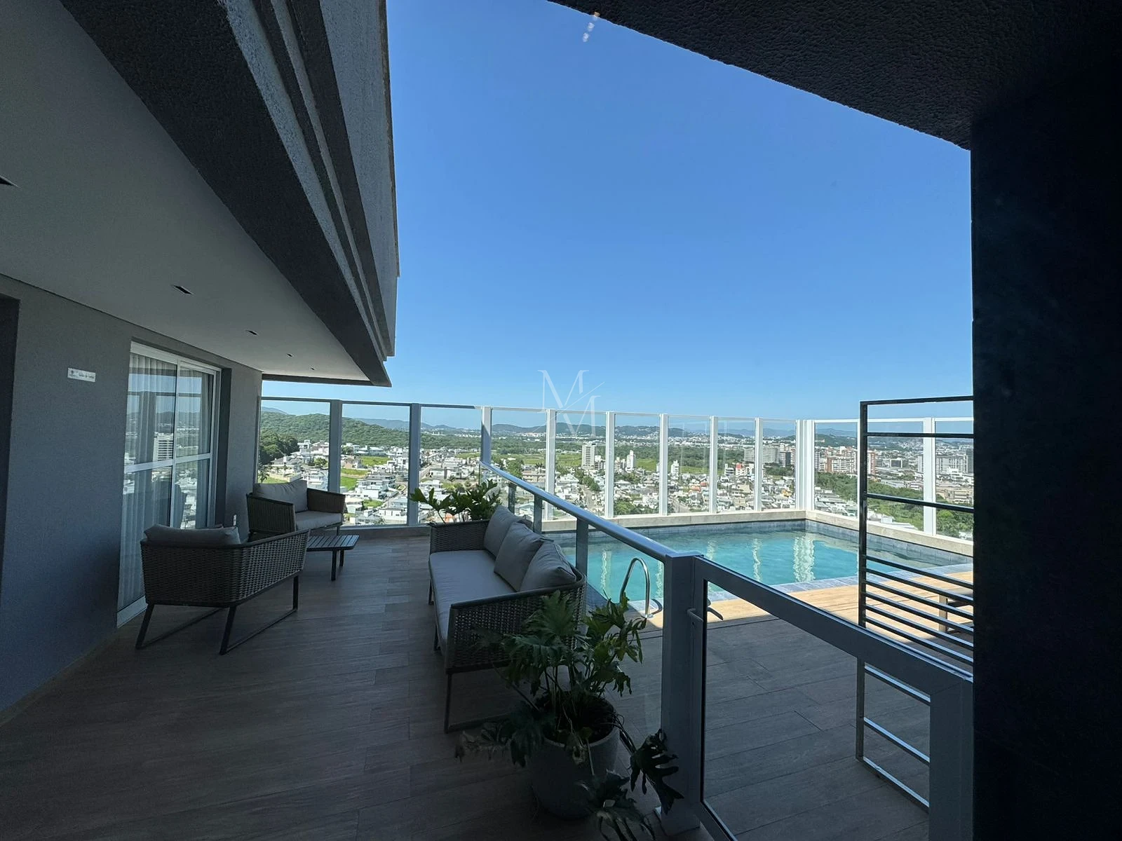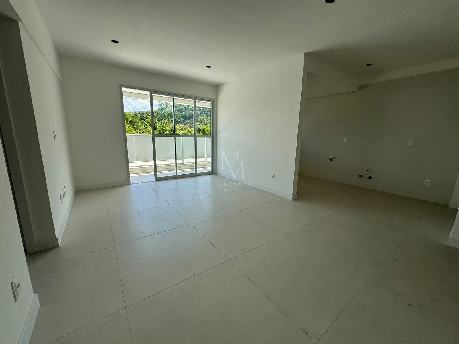 Apartamento 2 quartos em Pedra Branca, Palhoça com 104m² e sacada com churrasqueira. O imóvel possui 1 suíte, 1 banheiro social, sala de estar integrada e 1 vaga de garagem. Acabamentos incluem piso em porcelanato, esquadrias de alumínio com persianas integradas nos dormitórios e preparo para ar-condicionado split e aquecimento a gás.