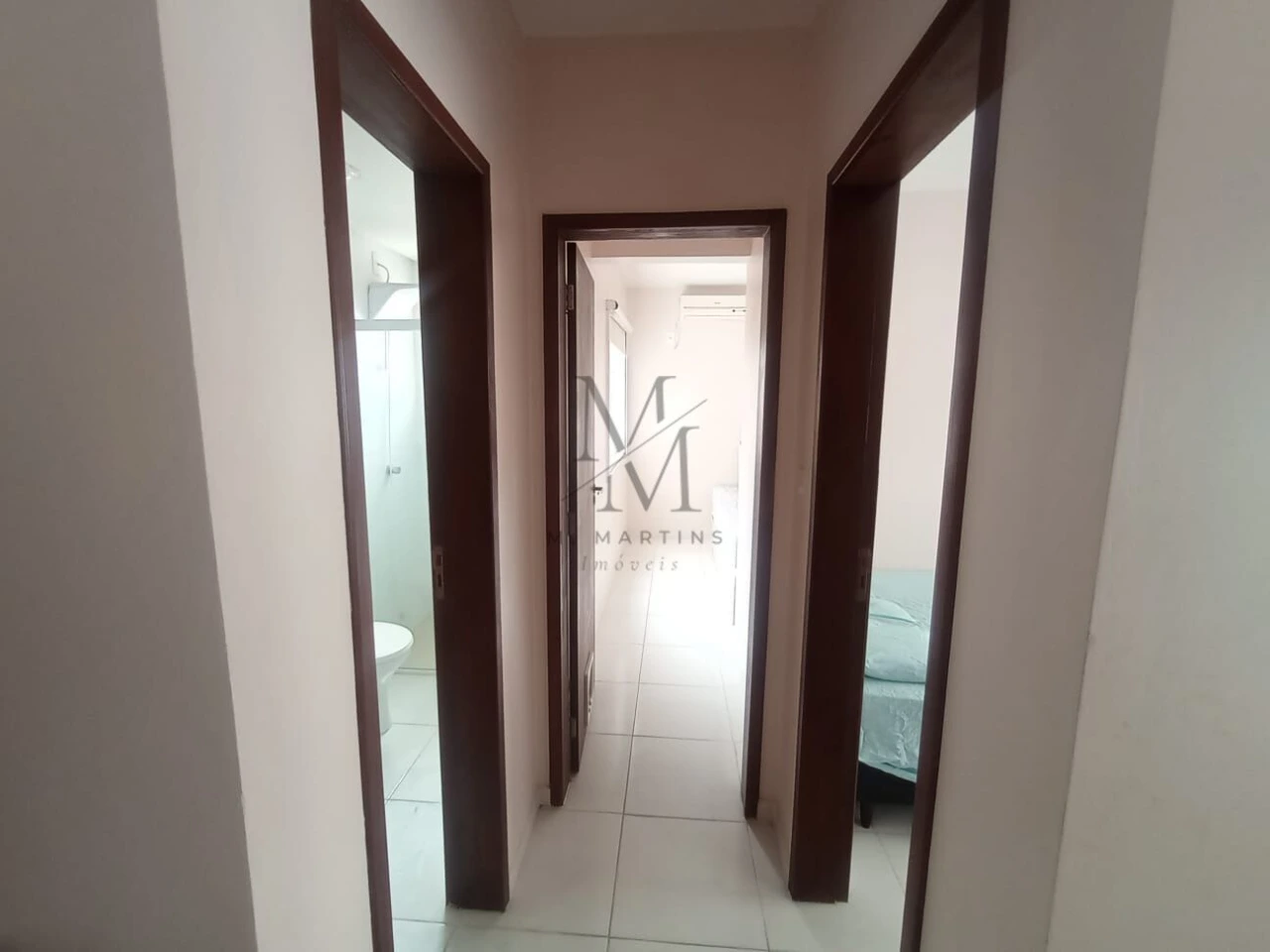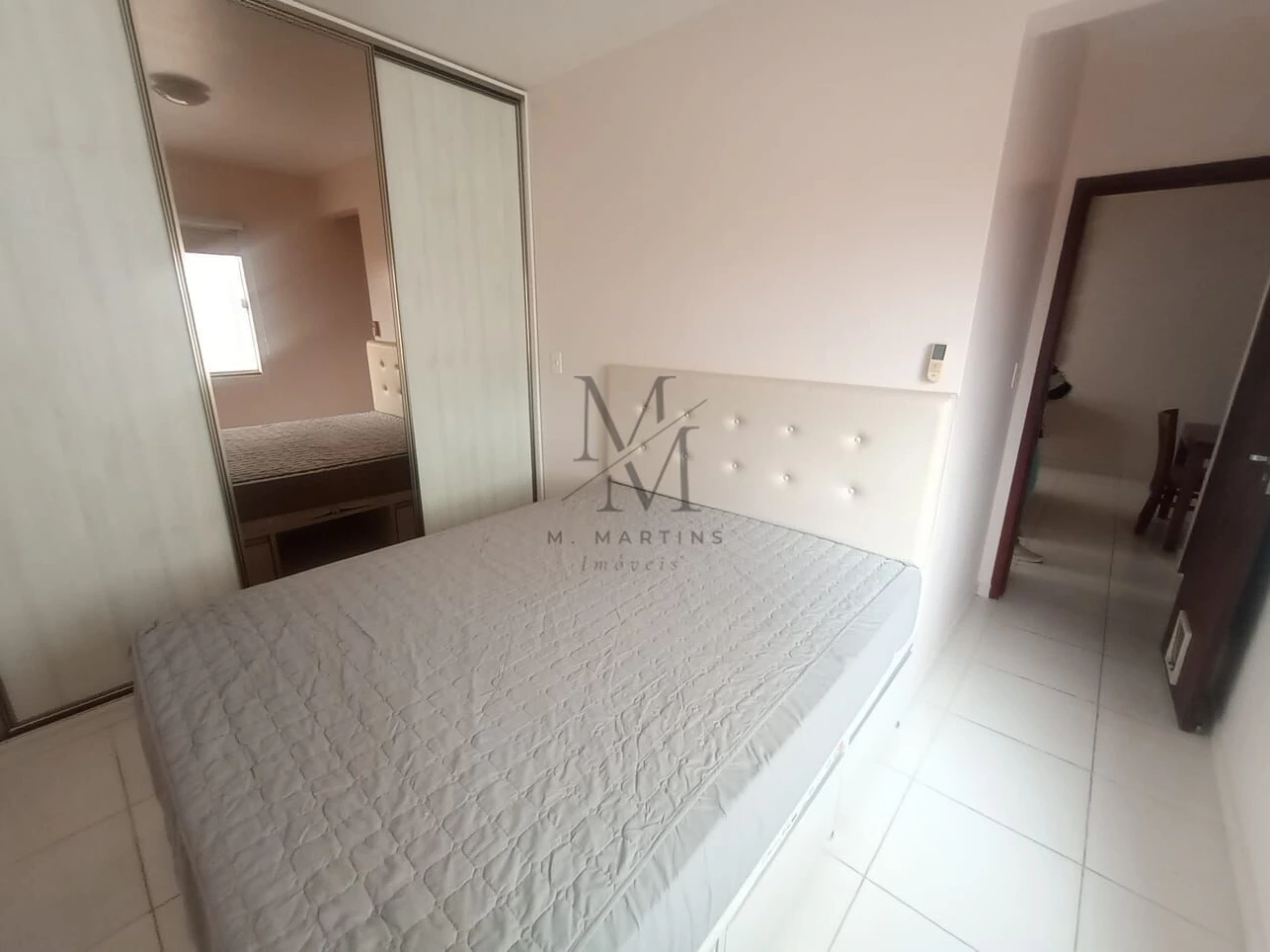 Apartamento dois quartos, cozinha, sala integrados e banheiro social.