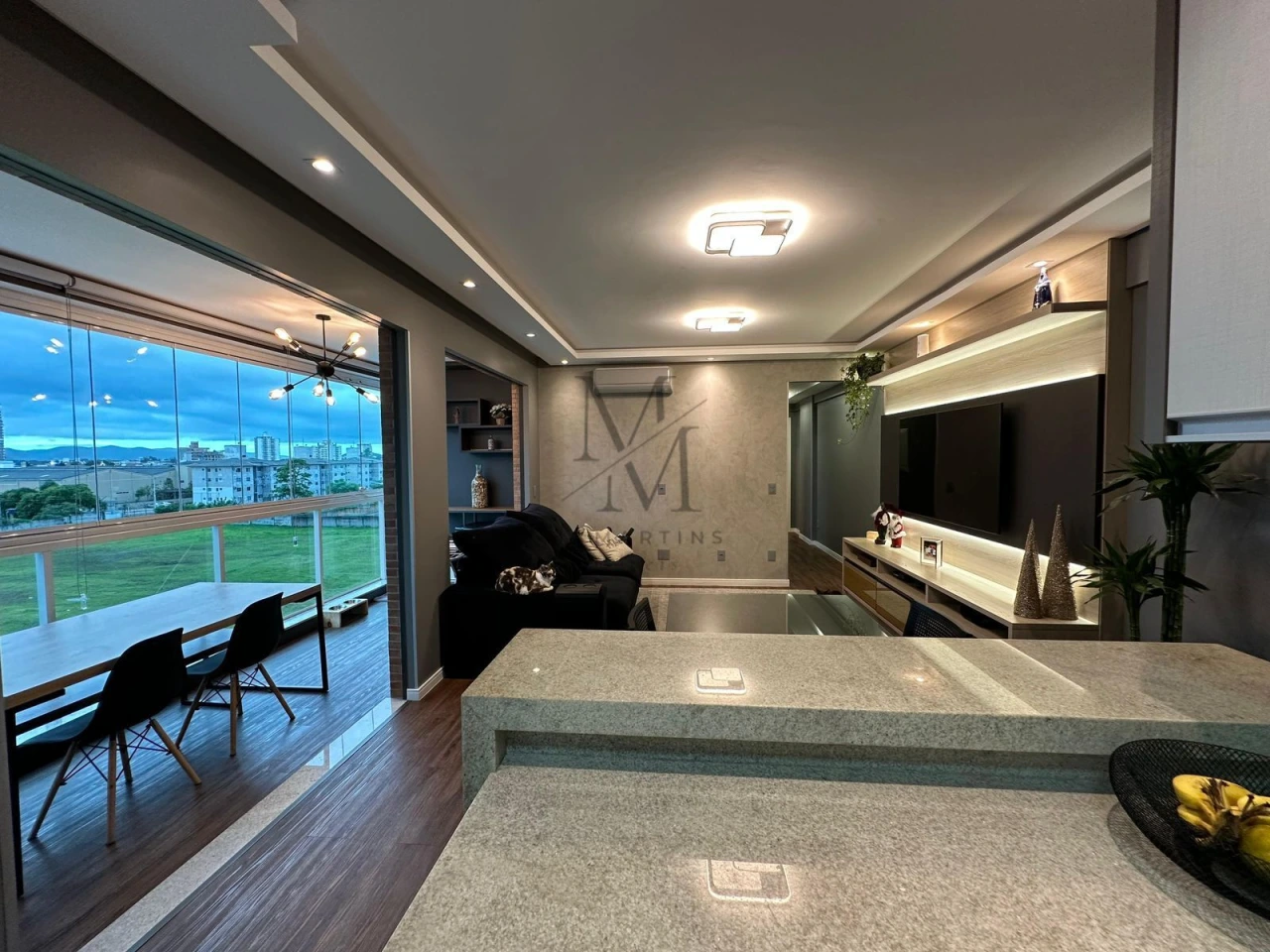 A área social é integrada, com sala de estar e jantar conectada à sacada gourmet com churrasqueira, criando o ambiente ideal para receber amigos e aproveitar momentos especiais. A cozinha é planejada e funcional, e o apartamento ainda conta com lavabo, lavanderia e 1 vaga de garagem coberta.