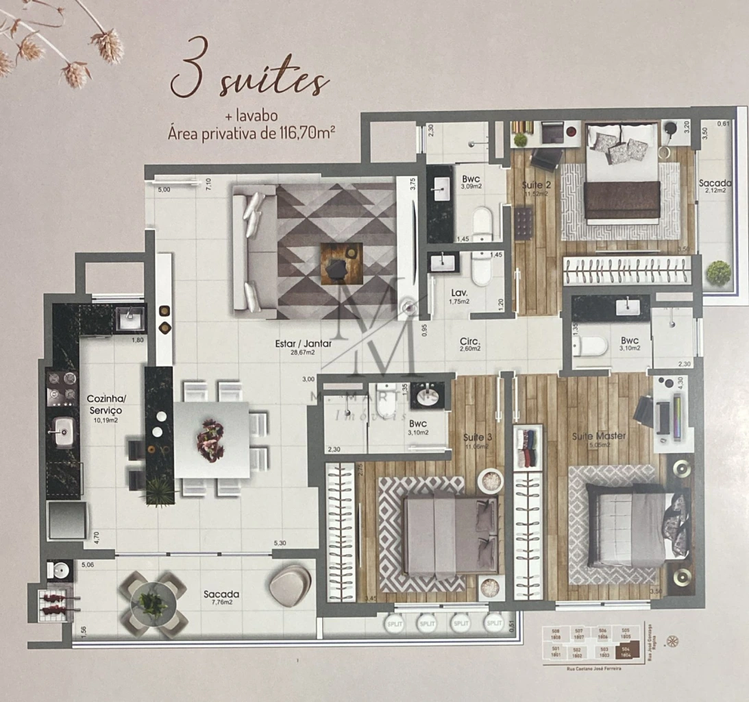 Apartamento 3 Quartos com 3 Suítes e 118m² - Kobrasol