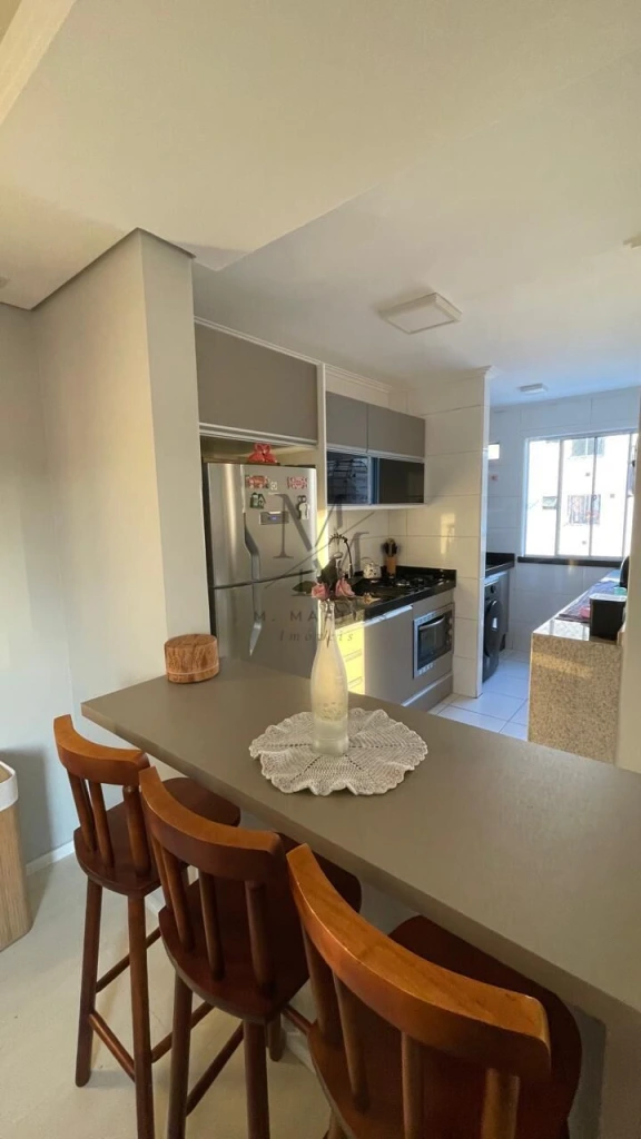 O imóvel contém:Rebaixamento em gesso Piso laminado Cozinha planejada, fogao embutido Área de serviço planejada Banheiro completo Quartos com 2 guarda roupas embutidosAr condicionado Ótima localização Ônibus na porta Vista para pedra brancaÓtima iluminação Garagem coberta Portaria digital Playground