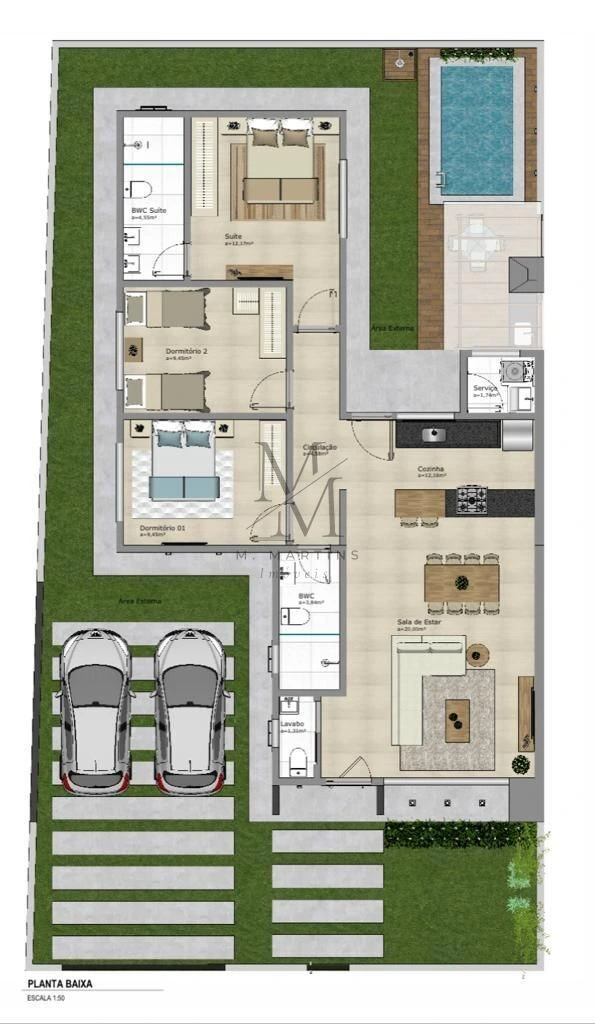 Loteamento Lisboa 3- 3 dormitórios 1 suíte,1 banheiro social, sala e cozinha integrada teto em gesso rebaixado, área de serviço coberta,2 vagas de garagem coberta privativa, quintal frente e fundos, área gourmet com churrasqueira a carvão, piscina concreto , lavabo , sol da manhã .
