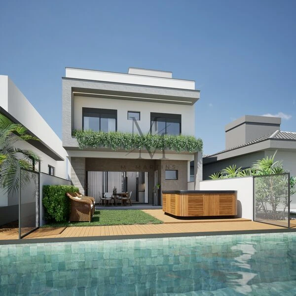 Apresentamos uma casa no Condomínio Blue, em BiguaçuImagine viver em um lugar onde exclusividade, conforto e lazer se encontram!Destaques da Casa:144,03m² privativos3 quartos, incluindo uma suíte masterCom jacuziFundo lagoGaragemTudo isso em um condomínio completo:Portaria 24h4 espaços gourmet e salão de festasPiscinas, prainha artificial e academiaQuadra poliesportiva, playground e mercado internoEntre em contato agora mesmo