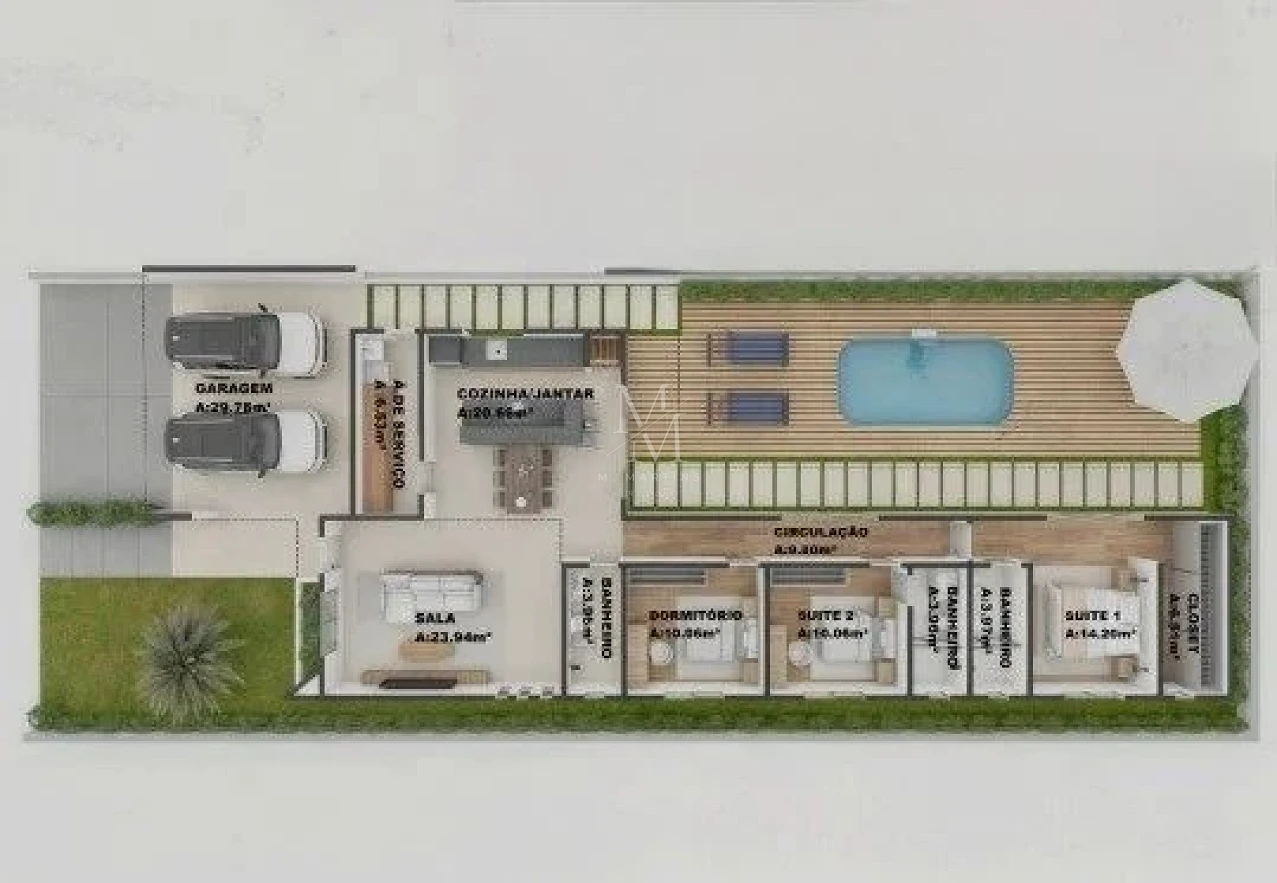 • Porcelanato em todos os ambientes