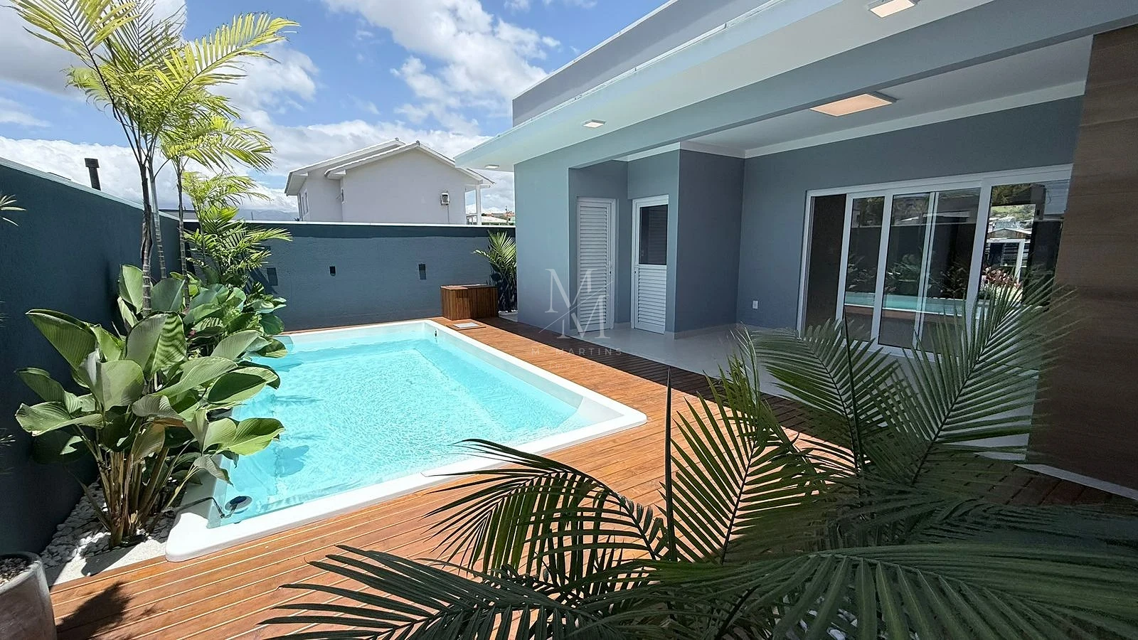 Casa 3 quartos em São Sebastião, Palhoça com 100m² e piscina privativa. O imóvel possui 3 dormitórios sendo 1 suíte, 2 vagas de garagem cobertas e área de lazer completa com churrasqueira. Acabamentos em porcelanato em todos os ambientes e entrega prevista para 2026.