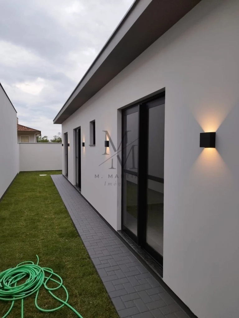 Casas com 3 quartos, sendo 2 demi-suítes e 1 suíte.- Estrutura para água quente à gás;- Lavanderia fechada integrada à casa;- Jardinagem completa em toda a casa;- Estrutura para ar condicionado com nitrogênio e garantia de 5 anos, condensadora ficará oculta;- Gesso em toda a obra com cortineiros;- Porcelanato 84x84 Eliane com fuga 1mm retificado;- Azulejo em porcelanato Eliane retificado com 1mm de fuga;- Massa Corrida em toda a casa internamente;- Fechadura Eletrônica na Porta de Entrada;- Kit portas internas da Rohden (mesmo padrão Pedra Branca);- Energia elétrica trifásica;- Regulador de pressão na entrada de água Samae, que serve como pressurizador para o abastecimento de água da residência;- Estrutura para interfone;- Estrutura para 4 câmeras;- Estrutura para internet em sala e quartos, facilitando automações residenciais;- Estrutura para antena residencial em sala e quartos;- Vasos sanitários com Jato Plus;- Tomada com fios com capacidade de 36A na garagem, pensado em veículos elétricos.