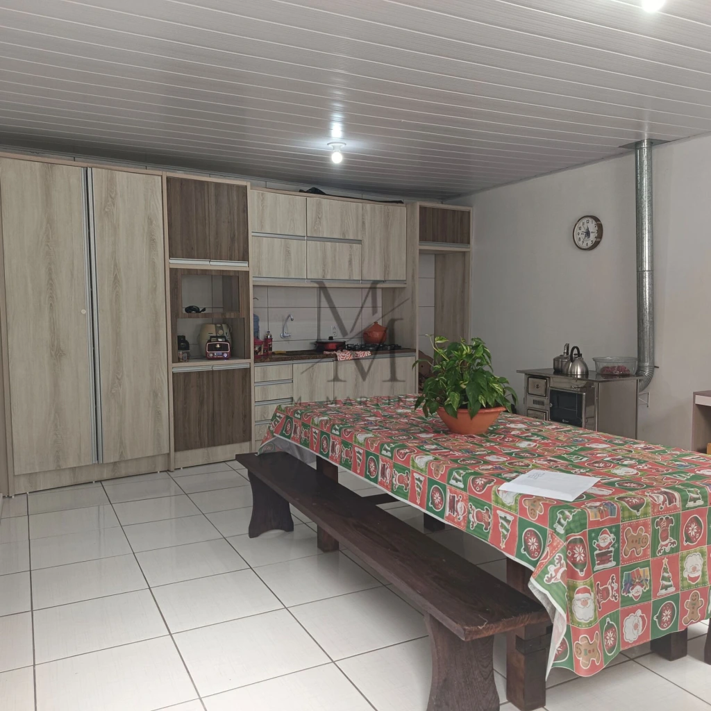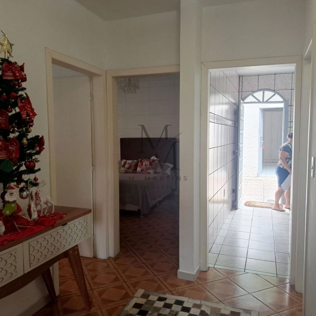 Casa 01:03 dormitórios, sendo 1 suíte;Sala;Cozinha;Banheiro social;Área de serviço;Porão.