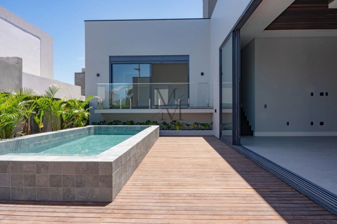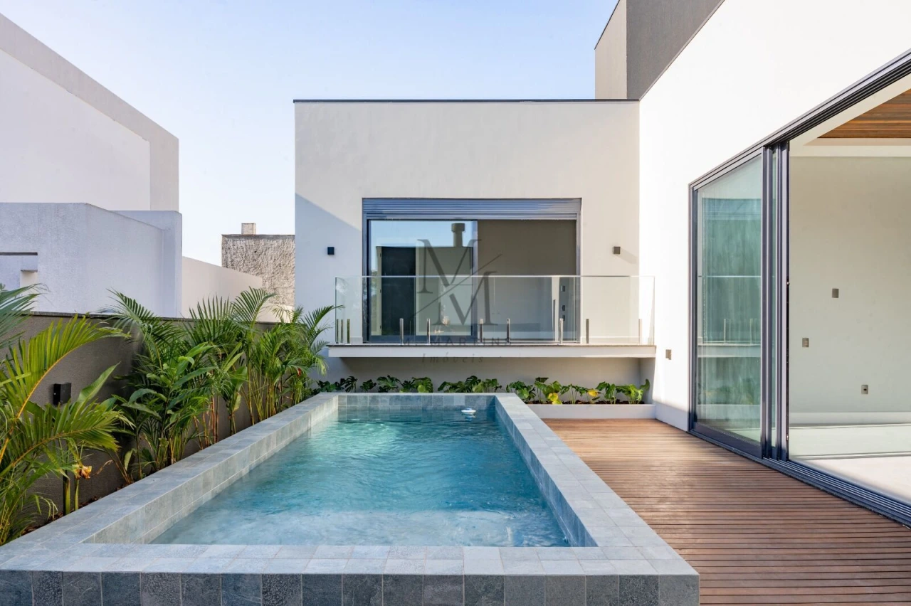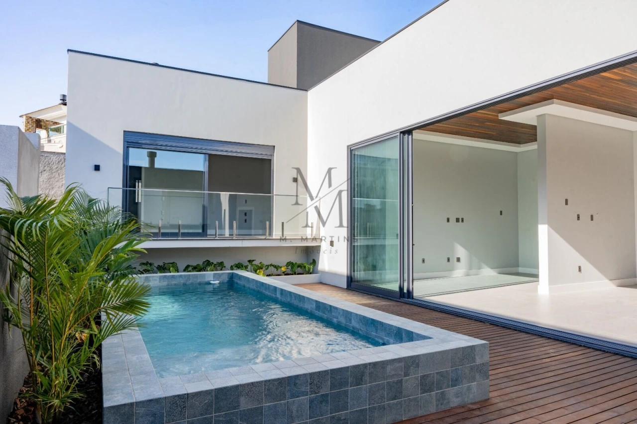 Com uma área construída de 240.5m², essa residência possui uma incrível posição solar, recebendo o sol da manhã de forma privilegiada. Além disso, conta com espaços de lazer pensados para proporcionar momentos inesquecíveis em família e com amigos, como churrasqueira, espaço gourmet, piscina e varanda gourmet.