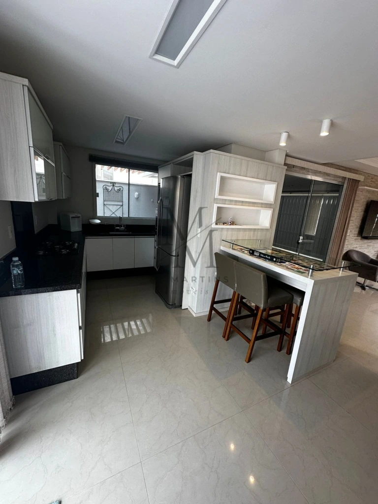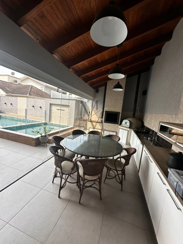Sala, área gourmet integrada a casa, já com os eletrodomésticos e sistema de áudio interno e externo.